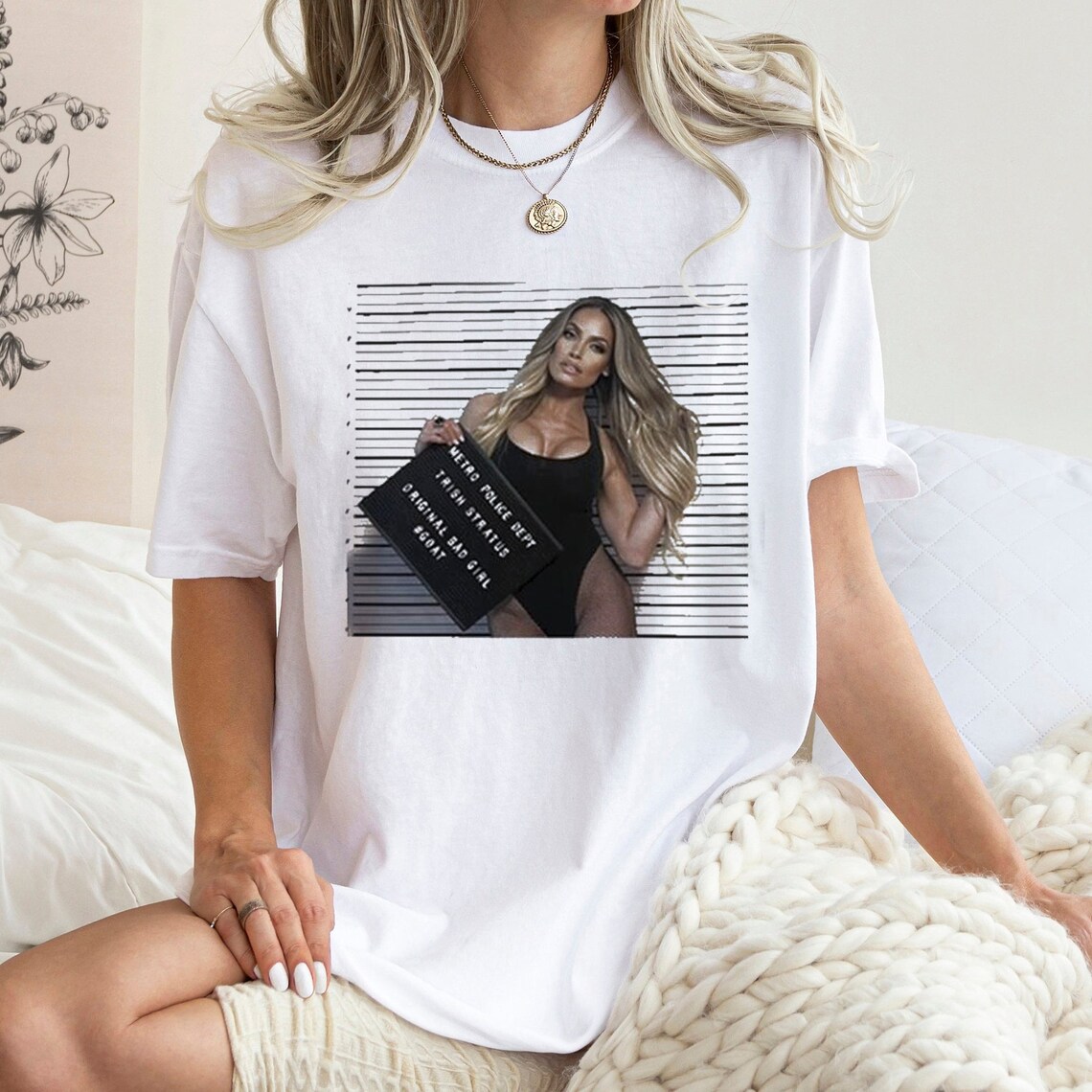 These shirts pay homage to a moment in time, capturing Trish Stratus’ mugshot on September 1, 2023. A unique blend of nostalgia and appreciation for this iconic figure, they celebrate a specific event that holds significance for fans.